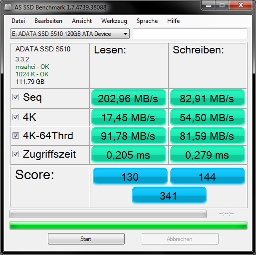 Holt schrieb:Die 128GB finde ich zwar etwas knapp und pro GB auch recht teuer, aber wenn es Dir reicht, die Werte passen jedenfalls und die seq. Schreibrate ist sogar deutlich über der Herstellerangabe.