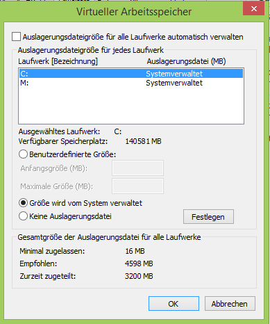 Woran kann das liegen? Hab die Auslagerungsdatei erst aus gehabt, dann gelesen, dass das nicht empfehlenswert ist und jetzt steht sie auf "systemgesteuert".