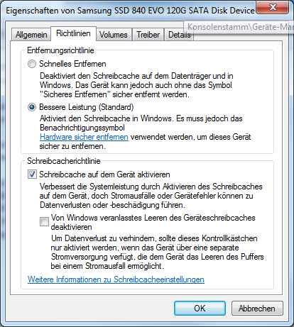 Die Schreibcacheeinstellung sollte so aussehen: