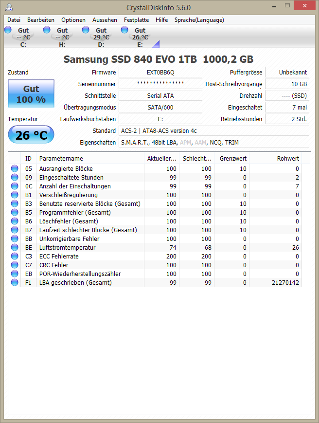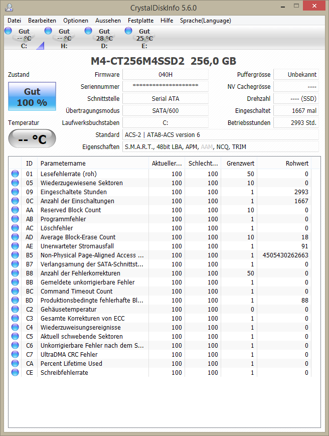Ja alles wunderbar, die sind ja auch noch so gut wie neu, die eine hat 18 P/E Zyklen hinter sich und die andere gerade 3.Rios schrieb:Wie siehts mit den beiden Crucials aus? Alles in Ordnung?