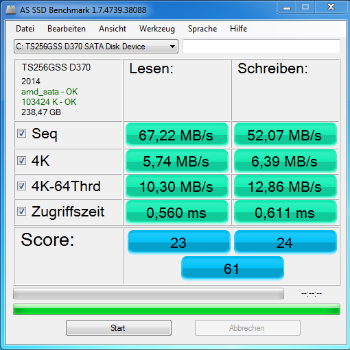 Das GA-MA770T-UD3P stellt nur SATA-Anschlüsse mit SATA 3Gbit/s zur Verfügung - siehe Spezifikation des Boards http://www.gigabyte.de/products/product-page.aspx?pid=3257#ov von daher sind die Werte so weit OK.