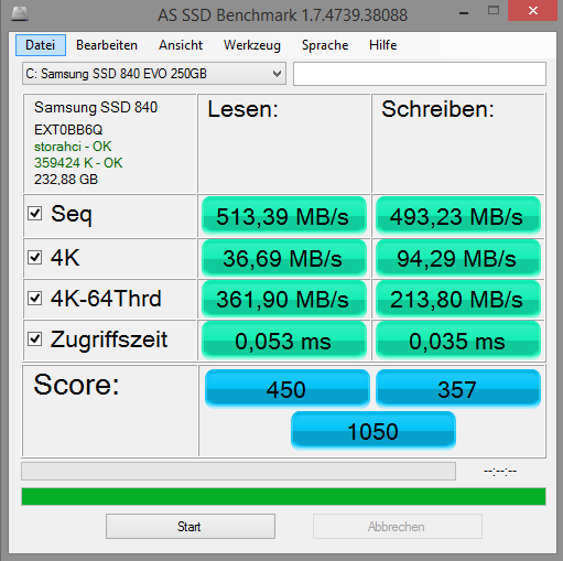 Ob es nun an schlechterer Hardware, Betriebssystem, sonstigen (BIOS) Einstellungen (die ich eigtl alle richtig eingestellt habe) oder halt doch an der SSD an sich hängt, kann ich nicht sagen..