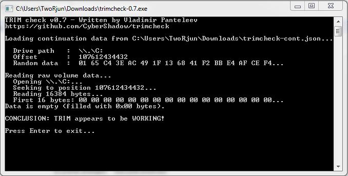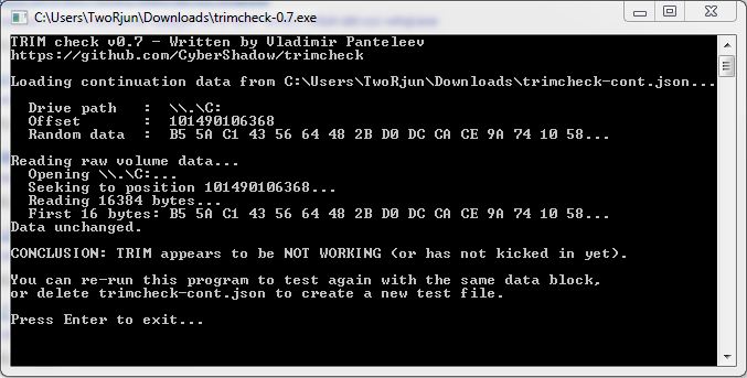 Wie lange hast Du zwischen beiden Läufen von Trimcheck gewartet? Wiederhole es ggf. noch mal und warte länger. Poste bitte außerdem den Screenshot von Drive Controller Info.