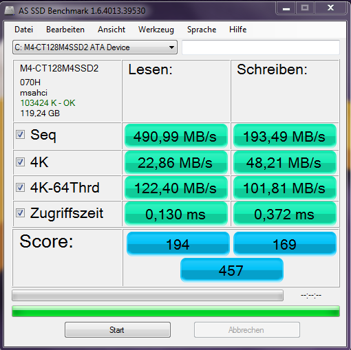 Irgendwie habe ich das Gefühl das meine SSD langsamer geworden ist, hatte mal nen Endwert von irgendwas bei 700 als ich sie damals eingebaut habe was wohl so im Jahr 2011 war.