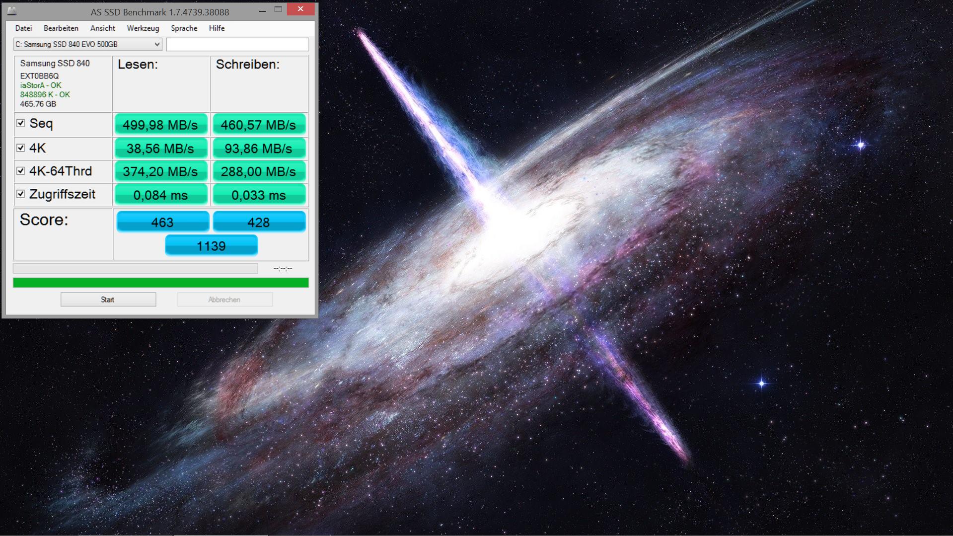 angesichts der Samsung 840 Evo-Problematik habe ich mich dazu entschieden, bei meiner Samsung 840 Basic 250Gb auch mal ein paar Tests zu machen. AHCI & Trim sind aktiviert, Windows 7 läuft auf ihr. Passen die Werte soweit? Den HD Tach Test habe ich zwei mal gemacht, weil mich das Ergebnis etwas verwundert hat.
