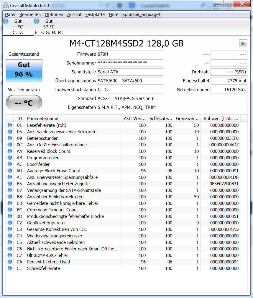 Die 4k Werte hängen vor allem vom Board und dessen Energiespareinstellungen ab, da sind gerade bei AMD Systemen die Werte ohne ensprechende Einstellungen deutlich schlechter als sie bei der jeweiligen SSD ein könnten, aber 25MB/s bei 4k Lesend sind für die MX100 256GB schon nicht so schlecht.