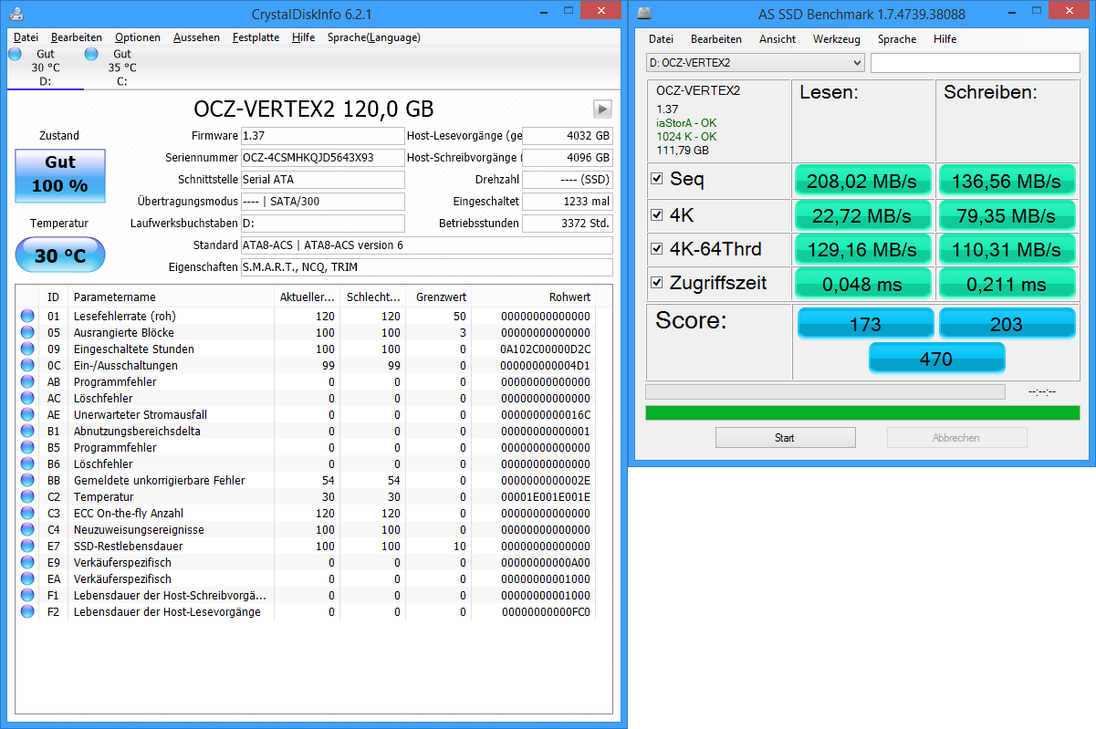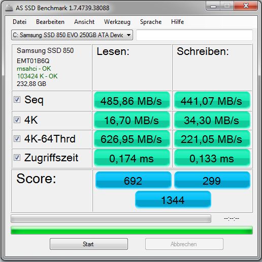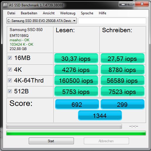 Rein theoretisch können nicht mehr als 300MB/s über den SATA II Controller gehen. Praktisch ist bei ca. 280MB/s Schluss.
