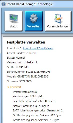 Habe jetzt Intel® Rapid Storage Technology Version: 11.2.0.1006 (etwas älter) installiert, weil ich gelesen habe, das es mit dem neueren Probleme geben kann.