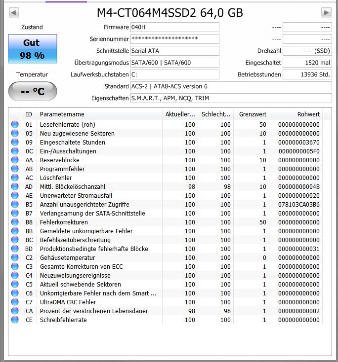 [Sammelthread] Sind die Werte meiner SSD in Ordnung? (Teil VII)