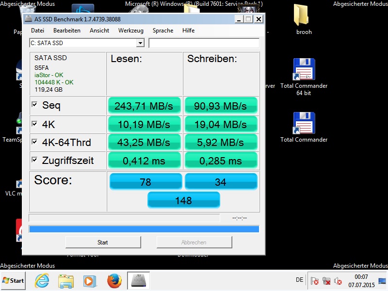 Habe einen weiteren screenshot mit meiner 1,5 TB Platte und einem Bench screen im Abgesicherten Modus.
