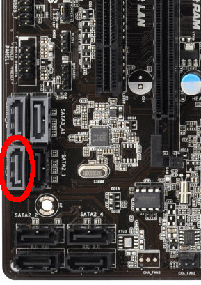 Der Intel mit SATA3_0 (ohne das A). Das ist der graue Port, der mehr in Richtung zu den anderen SATA2 Ports platziert ist.