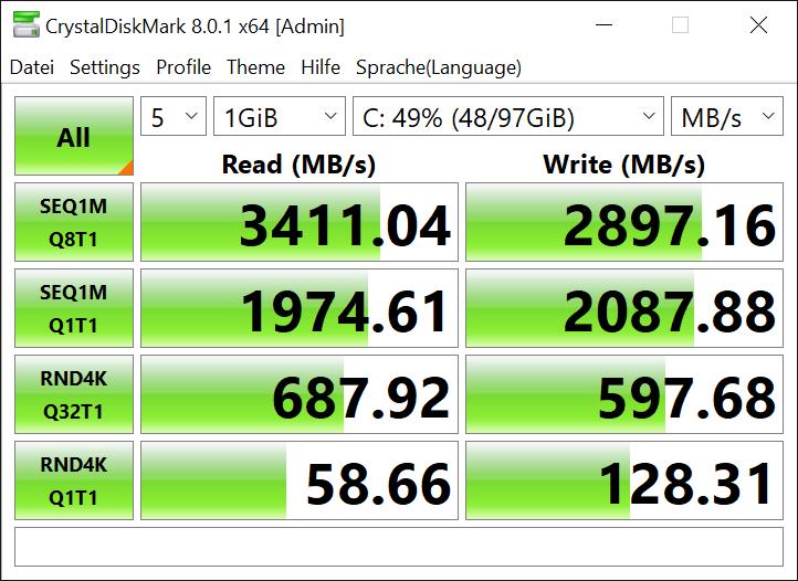 Ja, kein Drama. 4K Werte sind schon etwas lame (habe da ~3350/2650 und 93/227 unten stehen), aber bedenke, dass sie bei Dir bereits als "OS-Platte" läuft - dann sind die Werte total i.O., weil Windows drauf werkelt!Blutdurst schrieb:NVMe Settings umstellen hab ich gemacht die Werte wie ich sehen kann sind in Ordnung.