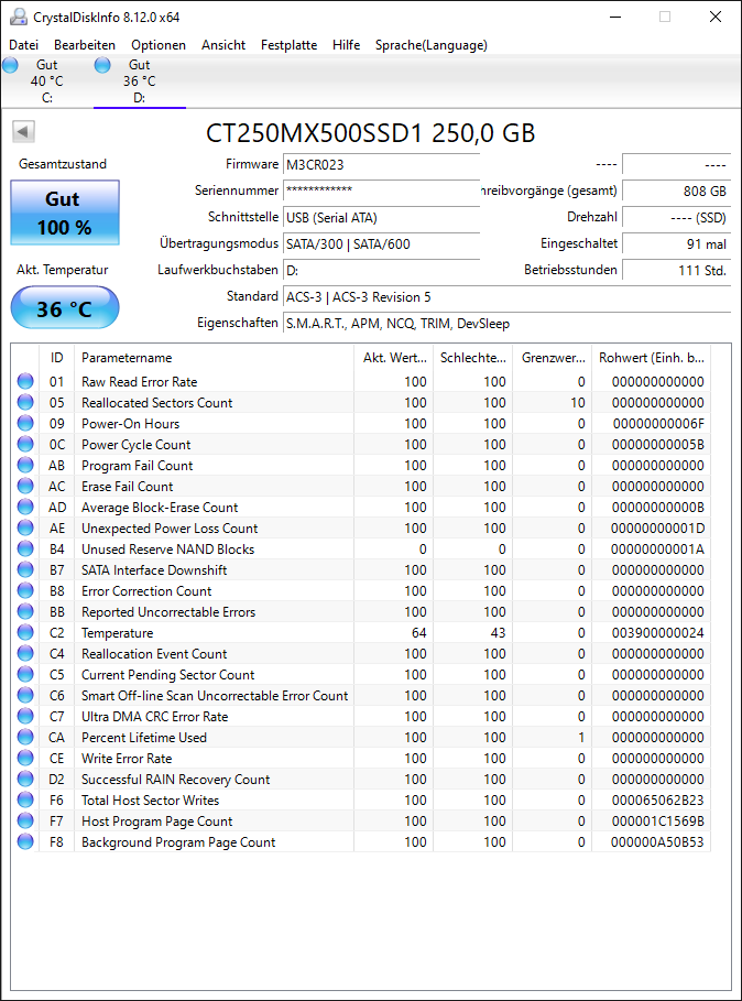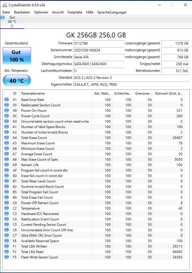 Die SSD ist laut Crystal Disk Info einwandfrei.