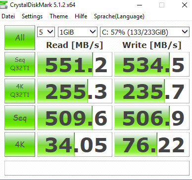 ich bin verwirrt mit meiner Samsung 950Pro und der XP841, beide als NVMe an PCIe x4 bzw x2. Ich hatte zwischen den beiden M.2 SSDs zu Anfang Transferraten von an die 800 MB/s (wegen x2).