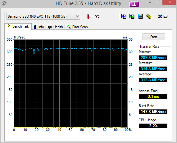 Womit hast Du diese 315MB/s ermittelt? Poste mal den Screenshot vom Benchmark oder war es beim Kopieren? Dann könnte es natürlich passieren, dass der Psuedo-SLC Schreibcache voll war und damit fällt die Schreibrate dann bei der Trion und im Mittel werden dann eben nur 315MB/s geschrieben. Die beworbenen Werte gelt ja nur für die paar GB Pseudo-SLC Schreibcache, danach schaffen die allermeisten SSD viel schreiben viel weniger.
