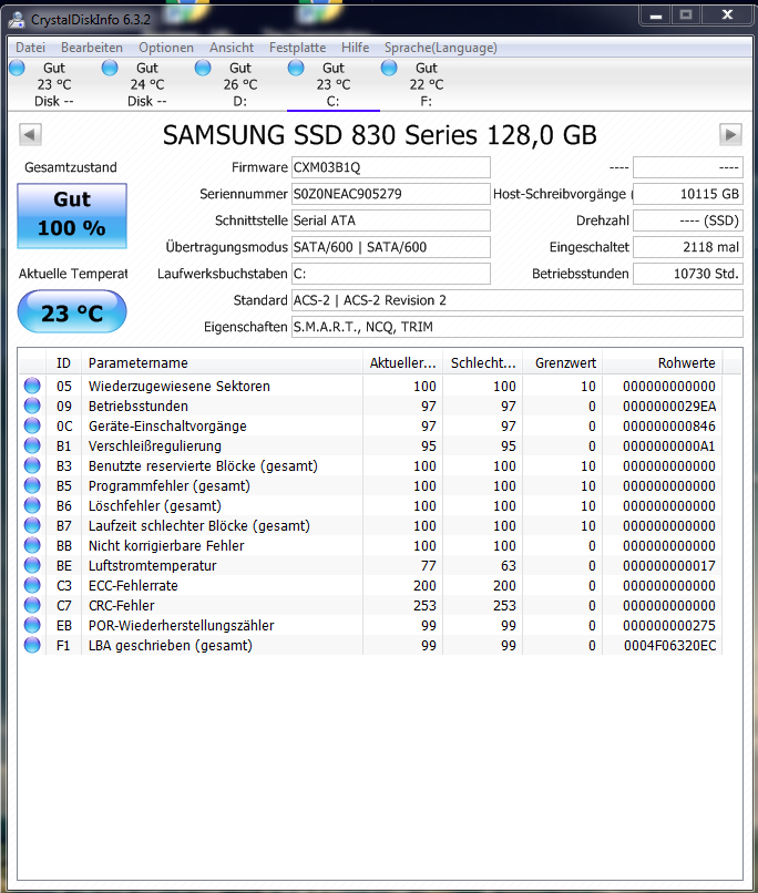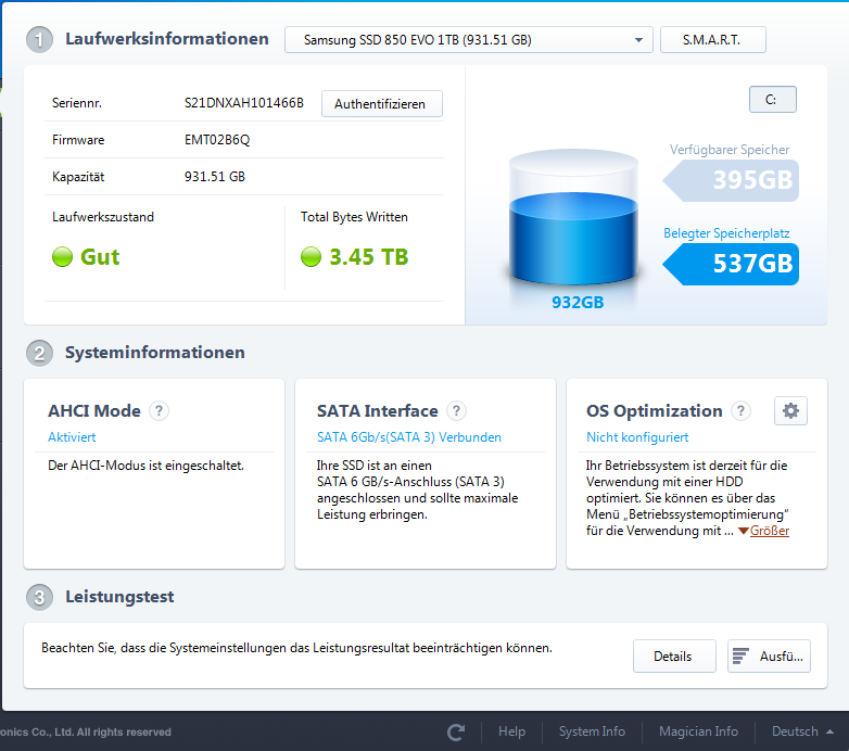 Besagte Samsung 850 Evo (1TB) auf der Windows 7 x64 mit allen Updates leuft.