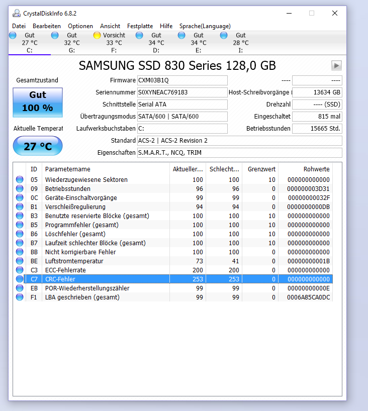 Die Werte der zwei 2 TB Festplatten sind meiner Vermutung nach "so schlecht/komisch", weil sie für meine Aufnahmen im Raid 0-Verbund laufen. Vielleicht erklärt das noch was..
