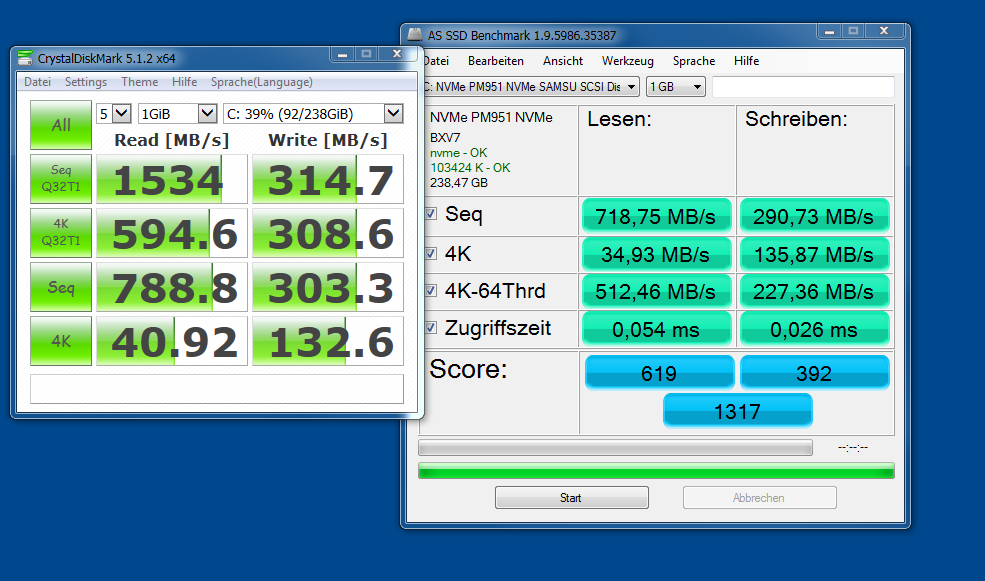 Teilweiße sind manche Programme sehr langsam. As ssd zeigt katastrophale Werte an.