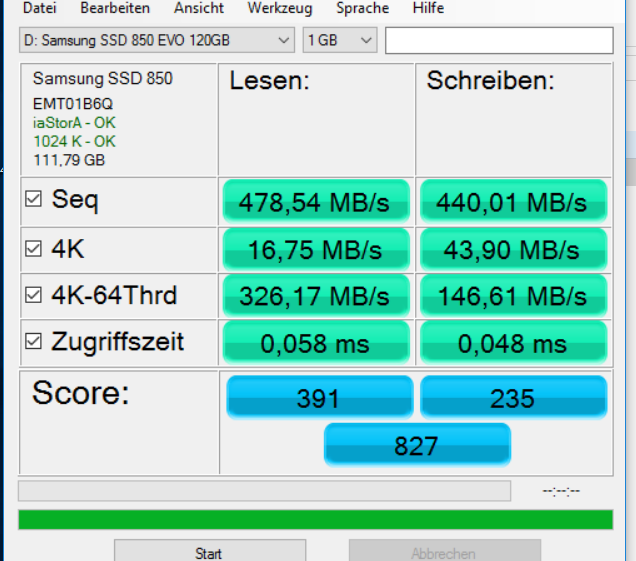 Außerdem nochmal die Werte meiner Samsung SSD 840 Pro 256GB vor 2,5 Jahren und heute: