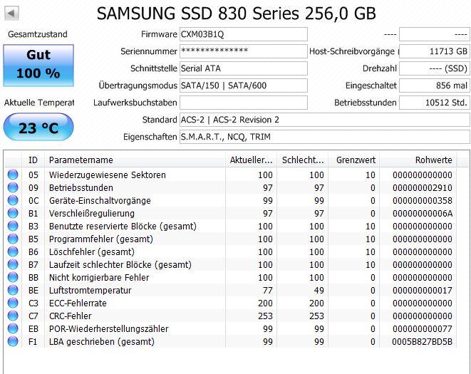 Der Rechner lief wieder ohne Probleme, aber ich bemerkte, dass die SSD nurnoch ~350 Betriebsstunden aufwies wo mindestens 1200 stehen sollten.