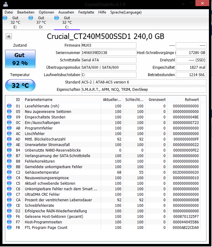 Vielleicht noch einen kompletten screen von CrystalDiskInfo posten: https://www.computerbase.de/downloads/systemtools/festplatten/crystaldiskinfo/.