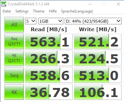 Wahrscheinlich habe ich mich einfach fehlleiten lassen von den 960Pro Werten in Kombination mit einer älteren CDM Version, wo einfach anderes getestet wurde. Die 960Pro ist schon erheblich schneller.