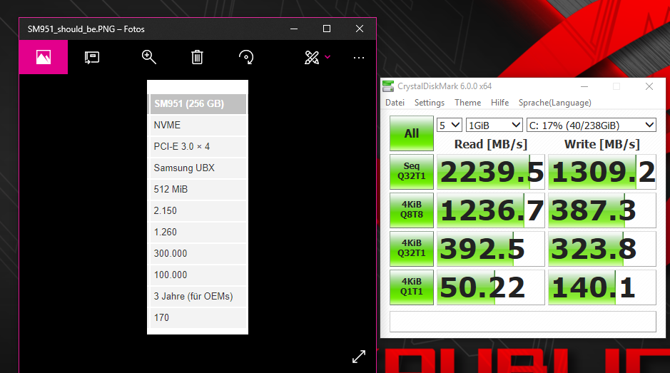 Hallo, kann mir bitte jemand kurz sagen, ob die Werte meiner SM-951 NVMe (256GB) normal sind?