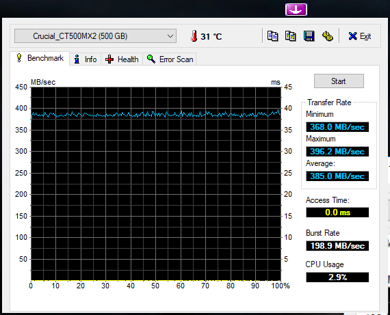 Die Crucial MX500 ist Neu und leer, deshalb bin ich grad skeptisch ob diese Werte normal sein können da sie recht klein ausfallen im Vergleich mit anderen Tests im Netz.