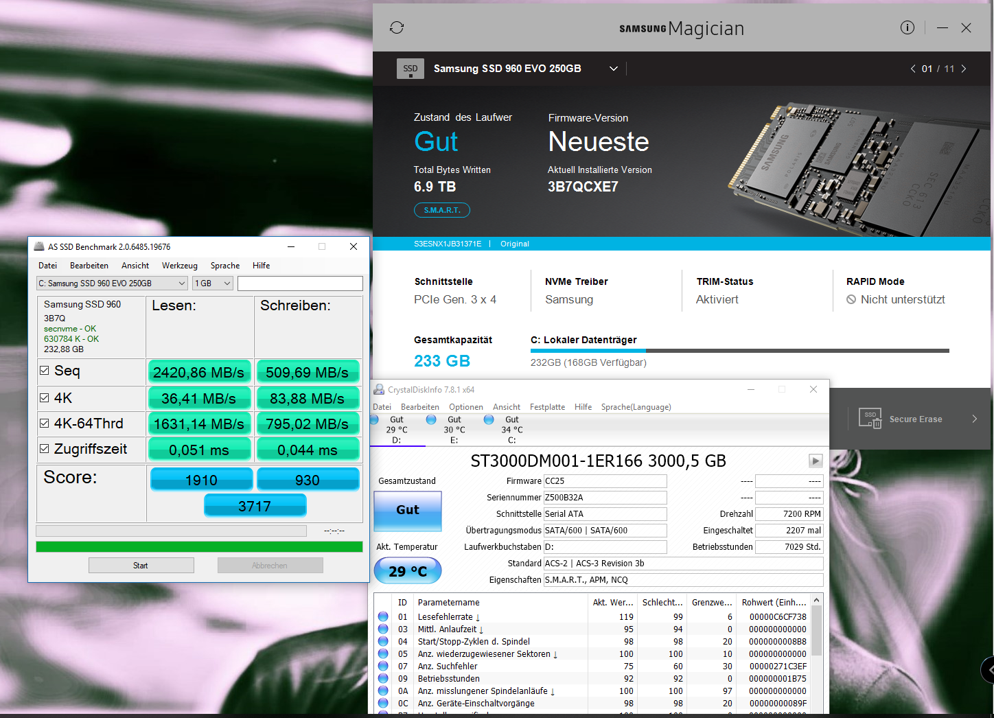 nur SATA300? Die SSD ist an den M.2 Slot meines Mainboards angeschlossen, der kann sogar NVME. Was ist da nur los? Die Samsung zeigt beides auf SATA/600.