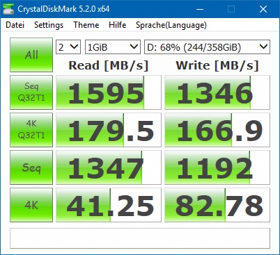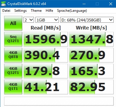 Dann benche doch mal mit CrystalDiskMark, denn AS-SSD bekommt aus schnelle NVMe SSDs sowieso nicht alles rausgekitzelt, aber die seq. Leserate ist schon auffällig niedrig, sogar unter dem Wert von 4k_64 Lesend. Bremst hier vielleicht ein Virenfinder oder ist sie verschlüsselt?Genius schrieb:Warum sind die Werte beim Lesen so niedrig? Sollte die nicht jenseits der 3000 MB/s sein?
