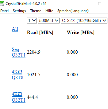 Die NANDs dieser SSD haben aber erst 0xAA = 170 P/E Zyklen runter, was etwa 5% der spezifizierten P/E Zyklen entspricht, weshalb der Aktuelle Wert vom Attribut AD eben auch anzeigt, dass noch 95% der spezifizierten P/E Zyklen der NANDs übrig sind und bei dieser SSD nimmt CrystalDiskInfo auch genau diesen Wert oben für die Anzeige "Good 95%". Bei andere SSDs, z.B. denen von Samsung wird der Wert genommen der den Prozenten der verbleibenden Reserve NAND Blöcke entspricht, aber den hat Crucial ja leider auf 0 gesetzt und damit würde dann immer 0% dort stehen, was noch unglücklicher wären. Da die Prozentangabe also bei unterschiedlichen SSDs auf unterschiedlichen Attributen beruht, kann man diese nicht direkt vergleichen und sollte nicht so viel darauf geben.
