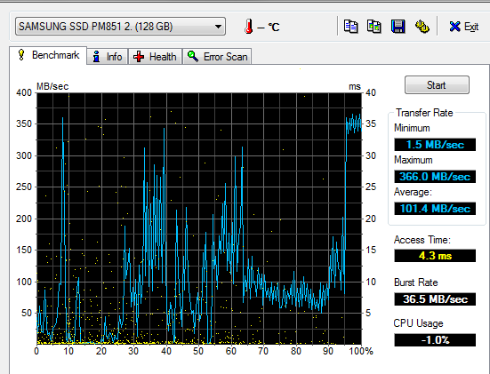 Kreidlermuslf, läuft der Chipstz im RAID Modus? Wenn da kein RAID dran betrieben wird, würde ich ihn auf den AHCI Modus umstellen. Dann ist HD Tune für SSDs nicht geeignet, schon gar nicht um eine schwache Leserate bei alten Daten zu ermitteln, nimm den File Bench Tool von Blublah (Quelle), stell die Mindestgröße aber auf 3MB hoch und prüfe halt wie erwähnt ob die SSD getrimmt wird.