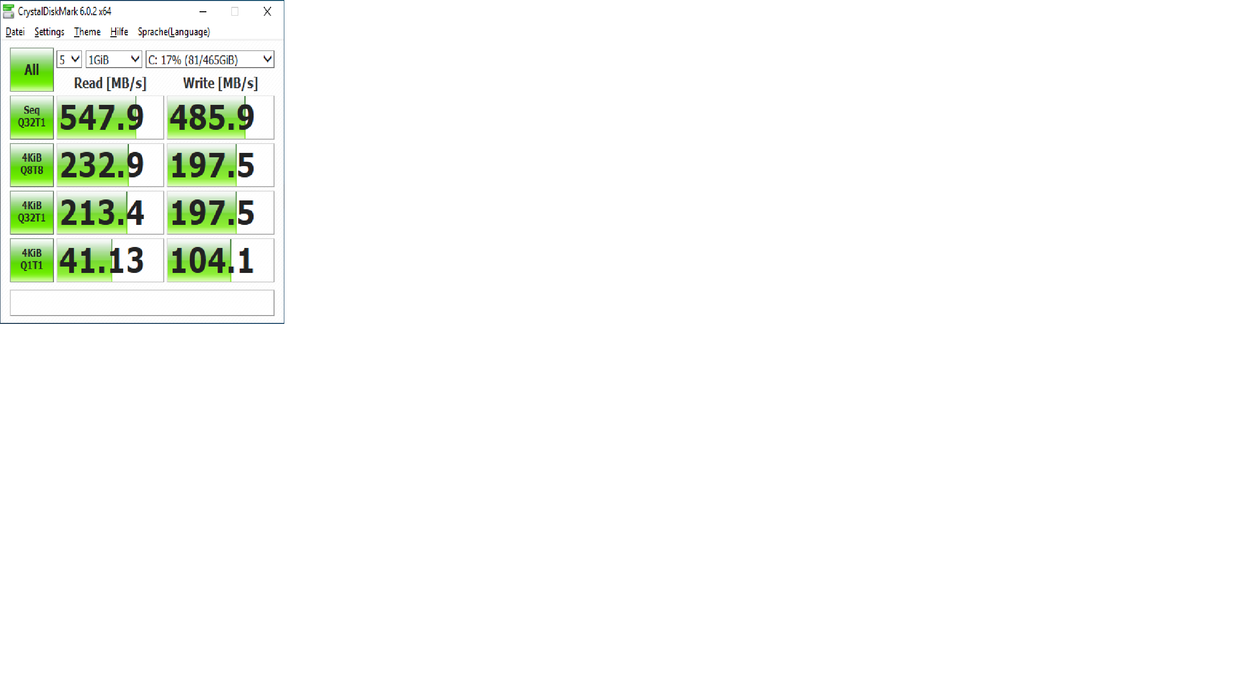 Irgendwie kommt es mir vor, dass die Benchmarkwerte von DiskMark auch ziemlich random sind... schwankt je nach Versuch immer wieder hin und her. Habe mal AS SSD Benchmark probiert und die Werte darin decken sich zumindest mit denen von Reviews, von daher wird das wohl alles schon irgendwie passen.