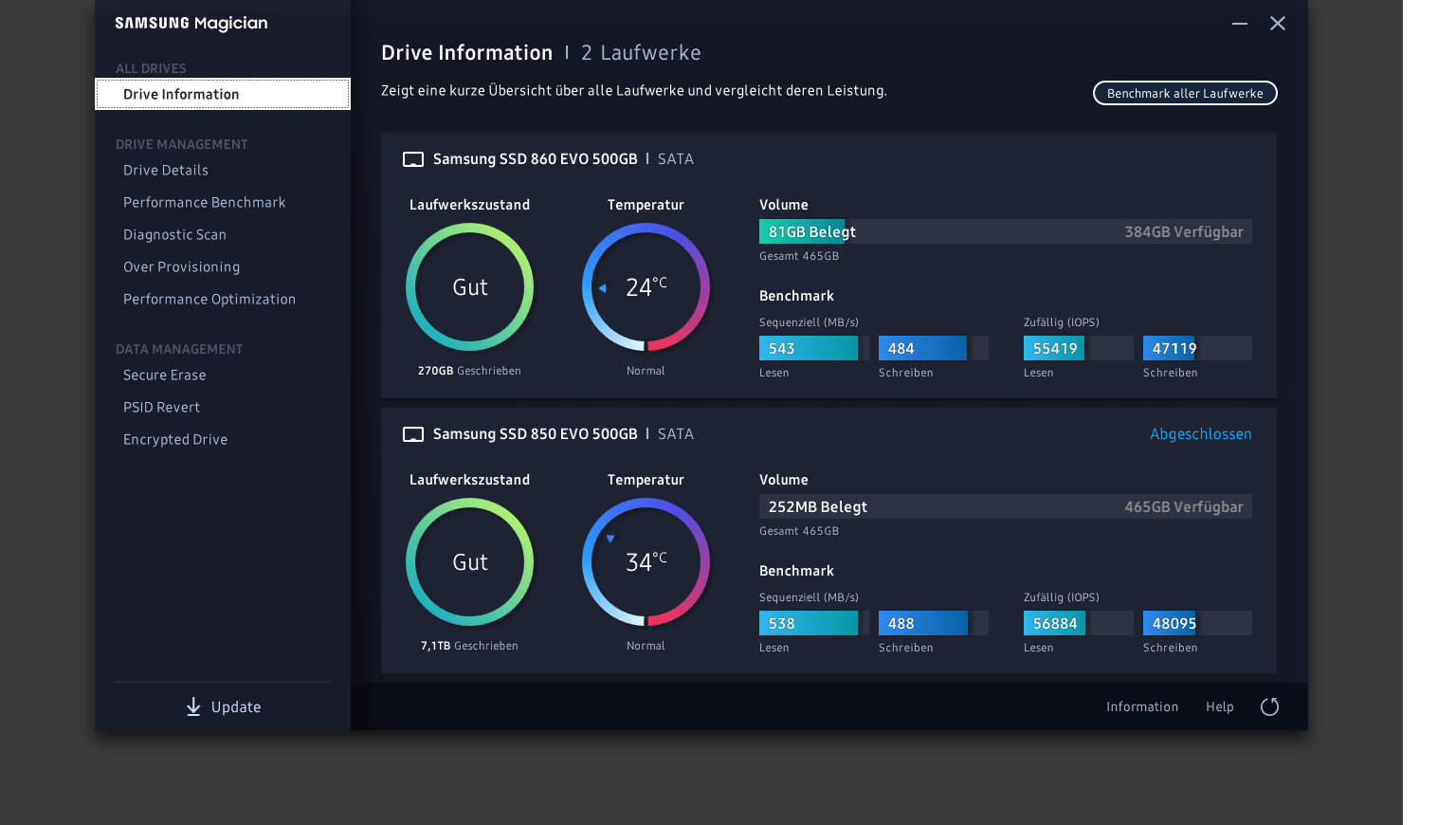 Achte darauf das die SSD an einem der Ports vom X570 (also SATA3-SATA6) hängt, denn der ASM1061 ist selbst nur mit einer PCIe 2.0 Lane angebunden und da gehen nicht als 400MB/s pro Richtung drüber.