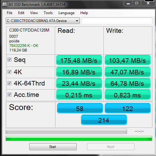 Das würde aber auch sehr gut die halbierte Schreibrate erklären. Das AS hat sowieso einige Tücken hat würde ich mal ein anderes Tool probieren, wie Crystal Disk Mark. Achte mal drauf, wie sich der "System"-Prozess verhält.