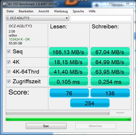 Grad ne Agility 3 60GB verbaut und folgende (miserable) Ergebnisse erreicht.