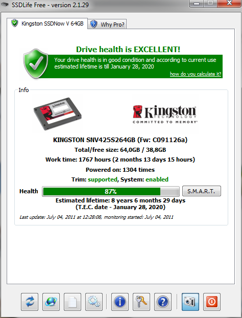 Hab mir im Marktplatz eine gebrauchte "Kingston SSDNow V-Series G2 Notebook Bundle 64GB, 2.5", SATA II (SNV425-S2BN/64GB)" gekauft.