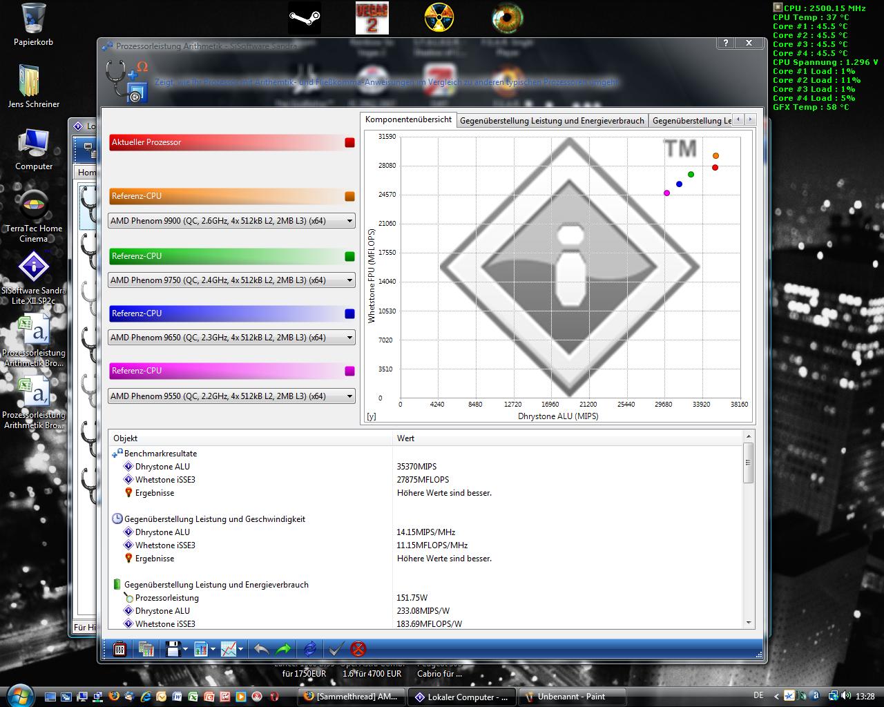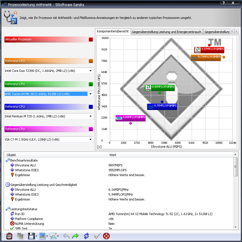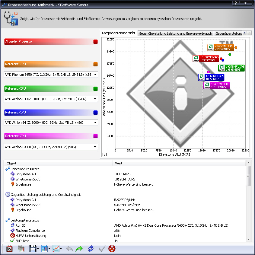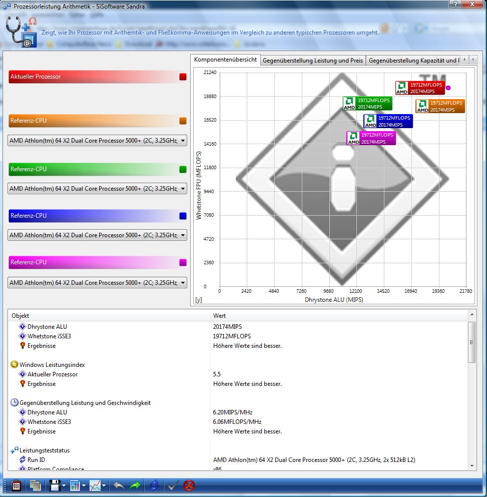 - Gebencht wird die "Prozessorleistung Arithmetik"