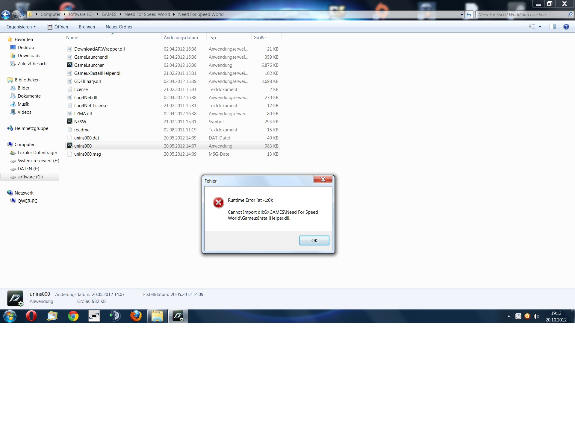 NFS Porsche läuft bei mir leider auch nicht, entgegen dem Listeneintrag. Das Spiel startet zwar, das Spielmenü läuft auch problemlos, und solange ich im Menü bleibe passiert auch nichts. Aber egal welches Rennen ich dann starten möchte, der Ladebildschirm mit dem Ladebalken wird noch angezeigt, dann stürzt das Spiel ab. Mir scheint als wenn DirectX 7/8 nicht läuft?