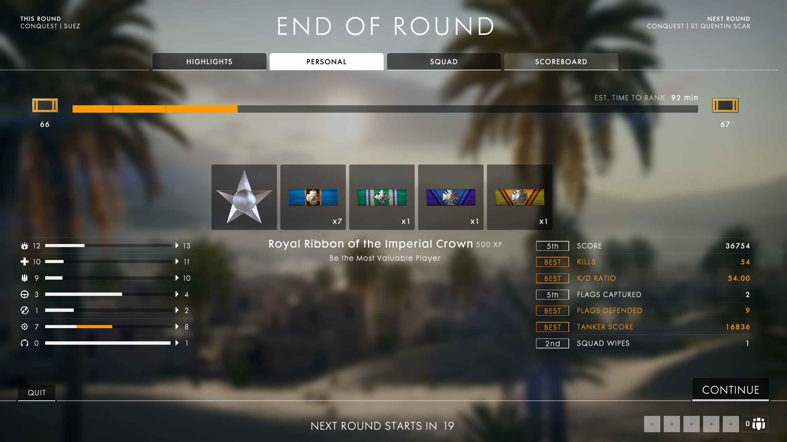 Ich hab mal eine Runde komplett non-PTFO gespielt. Als Scout keinem Squad beigetreten, immer ein paar Meter ausserhalb der Flaggenzonen rumgegammelt (ausser ein mal aus Versehen aus Gewohnheit A eingenommen), kaum spotten und nur faul gesnipert. Volle Runde Giant's Shadow Conquest 64p, 28:51 Minuten, 1.25 Match Bonus.