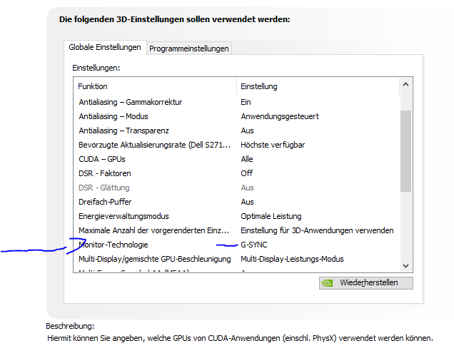 G-Sync wird bei mir komischerweise ignoriert... das merke ich daran, dass ich bei low settings mehr als 144 FPS habe was mit GSync eig. nicht möglich sein sollte.