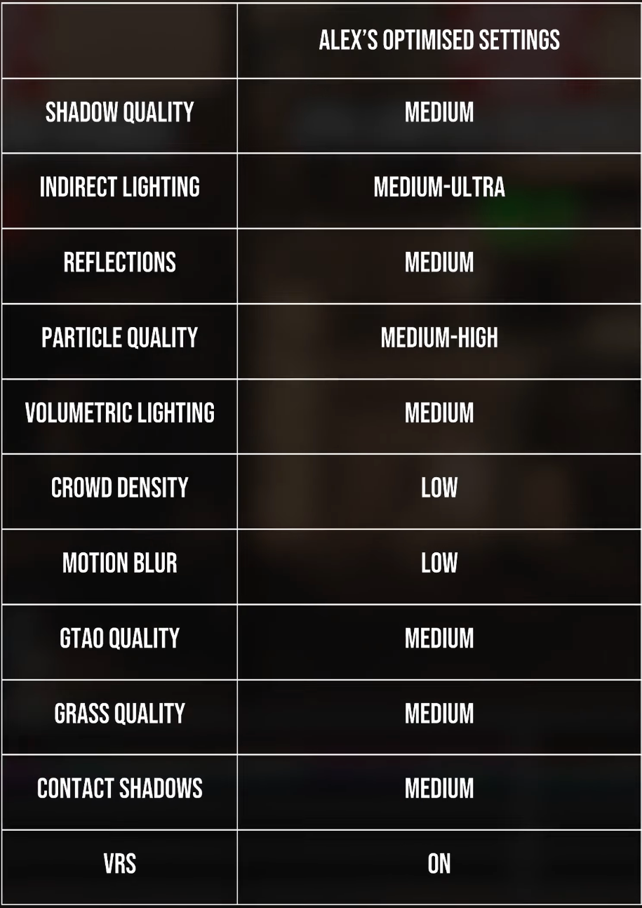 Diese Leistungs-Einstellungen sind eine Kombination aus Digital Foundry und das Hardware Unboxed Einstellungen!