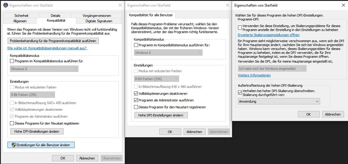 1. Auf die Starfield.exe mit der Maus Rechtsklicken "klicken" > Eigenschaften
