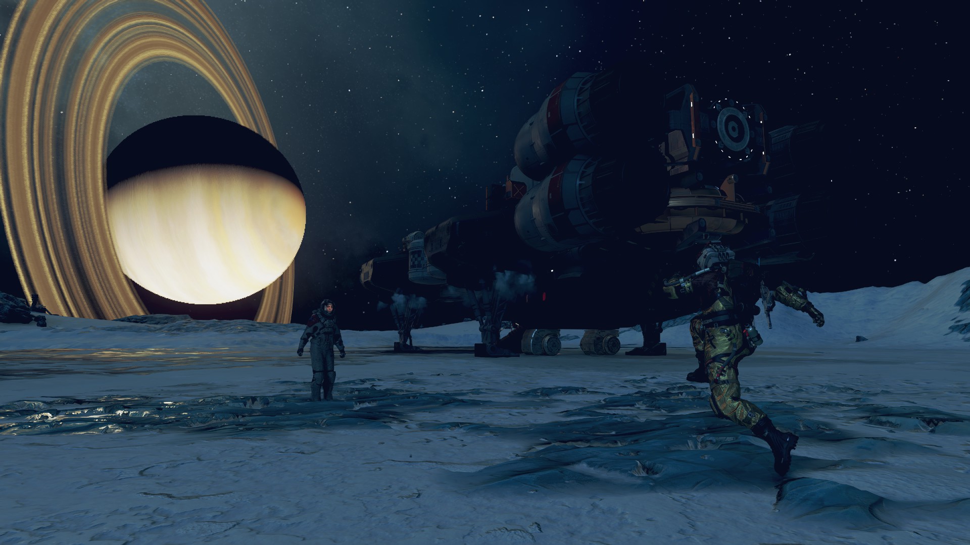 1. Die bereits mehrfach angesprochenen fehlenden Fahrzeuge für die Planetenoberfläche. Es würde mir ja reichen, wenn man Orte als Landepunkt für das eigene Schiff festlegen könnte. Also so in Richtung "Lande neben der Höhle in 1,5km Entfernung" oder so. Alternativ, da stehen überall Fahrzeuge herum und Mechs gab es ja auch, oder halt das Jetpack für Horizontalflug verwenden ... So viele Möglichkeiten.