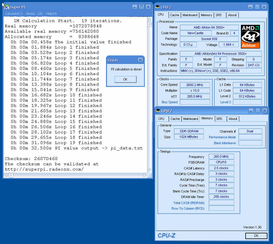 Bitte benutze nur die SuperPi Version mit Radeonx Mod (Klick), nur Ergebnisse mit Millisekunden werden in die Liste aufgenommen. Die CPU-Info im Beweisscreen (Klick) darf nicht fehlen.