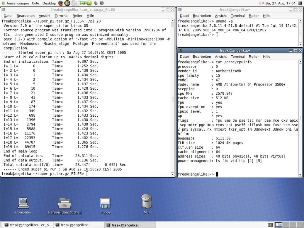 Mittelmaß bei meinen Super-Pi Ergebnissen - unter Windows XP 32 Bit-Befehlsumgebung.