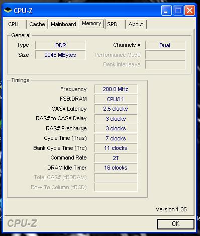 2x512 MB Samsung DDR333 @ 231MHz 3-3-3-11 2T (bessere Timings will er nicht, auch Grund für vergleichsweise "schlechte Effiziens")