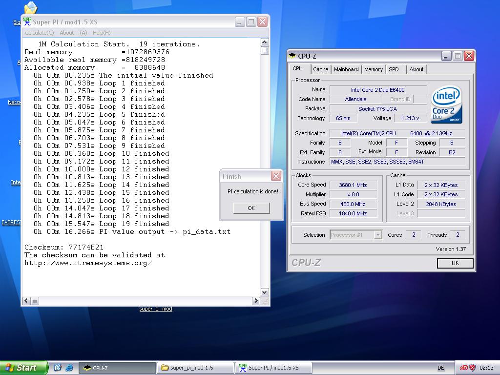 So hier mein PI Ergebnis. Damit will ich endlich auch mal das Gerücht widerlegen, man könne mit dem MSI P965 Neo nicht gut ocen. Im Bios vll. aber mit der SOftware geht das genauso gut wie die anderen