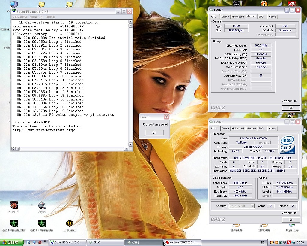 ManDrake, dein Ergebis entspricht nicht den Regeln. Auf dem beweisscreen sollte ein beendetes SuperPi zu sehen sein (das Kästchen "PiCalculation done" sollte noch sichtbar sein), zusätzlich ein cpu-z Screen von der cpu und dem Arbeitsspeicher, optional sind Ram-Timings (von memset)