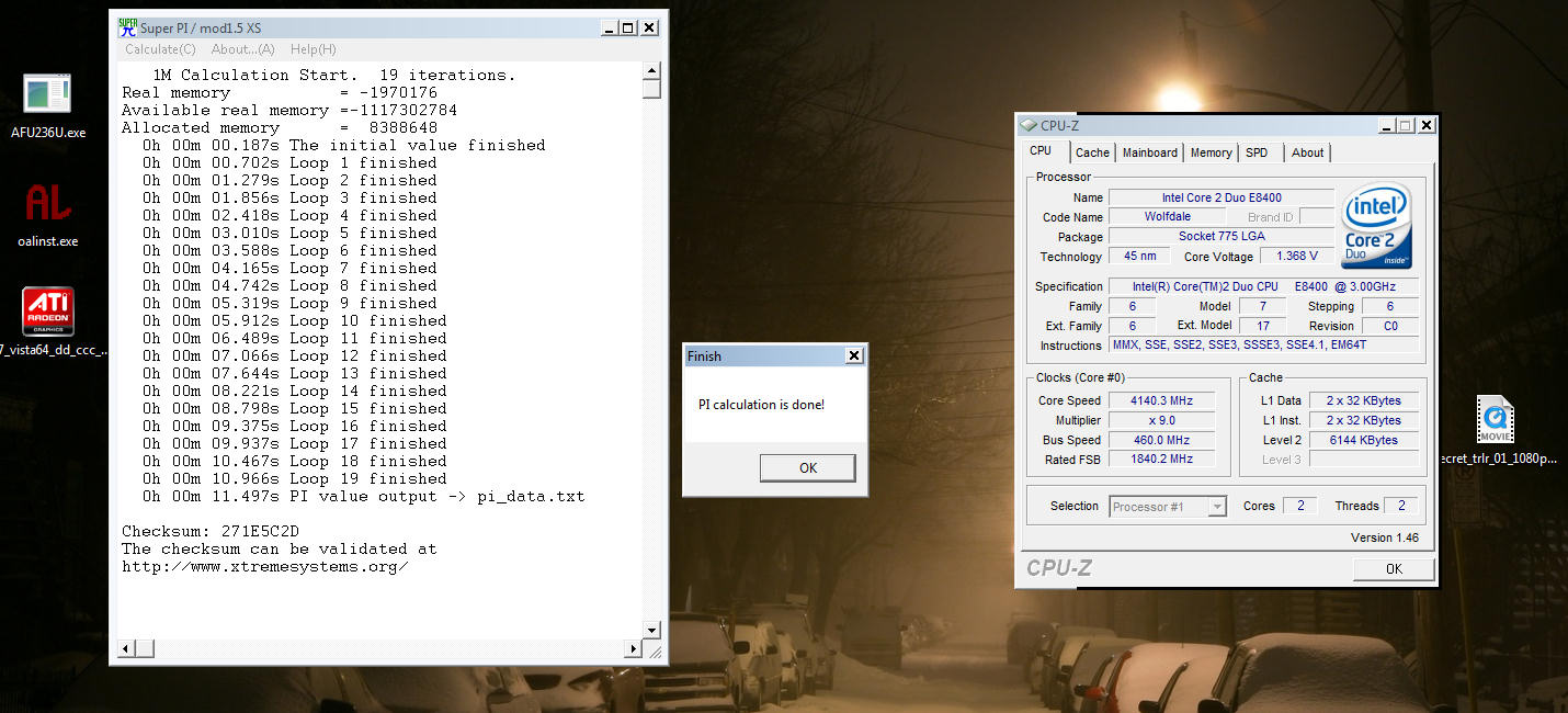 dermitderATI / E8400@4140MHz / 9x460 / 1,3875V / 2x2GB OCZ Platinum PC1000 @920 Cl5-5-5-15@ 2,1V / ASUS P5Q-E / LuKü "Noctua NH-U 12P" / VISTA 64 / 11,497sek.